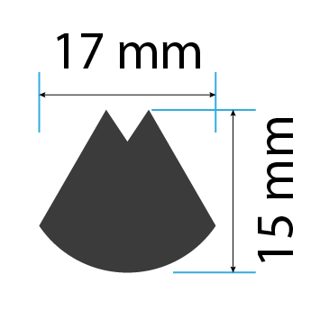 - Impression tip: approximately 15 mm long, 17 mm wide, angular scale with a triangle cutout at its top